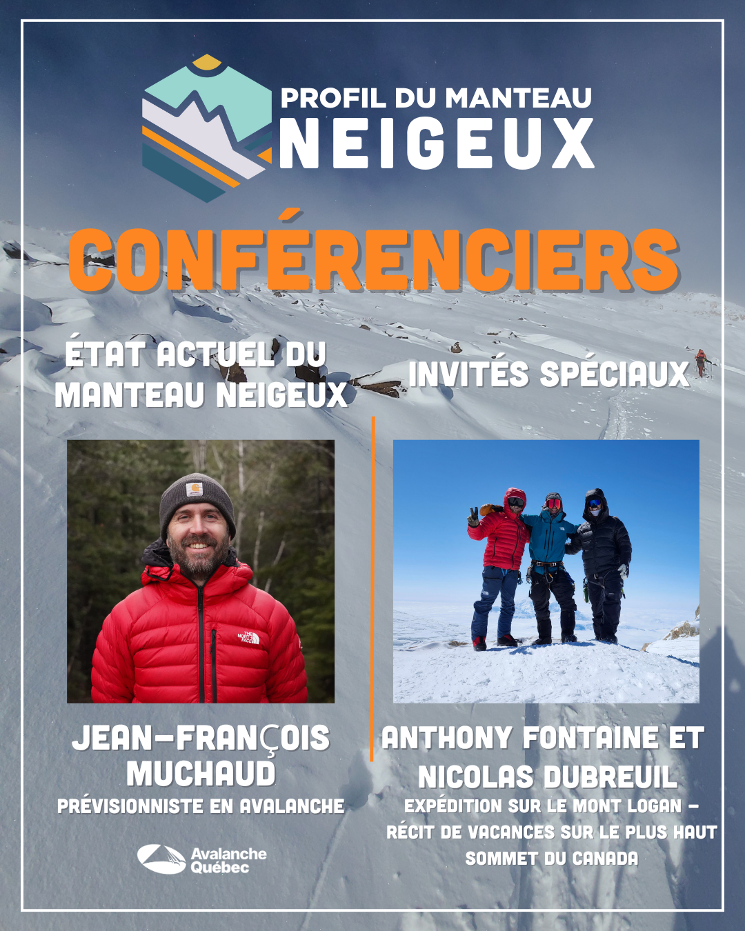 Le jeudi 2 avril 2026 dès 18h30, joignez-vous à nous pour le cinquième et dernier événement « Profil du manteau neigeux », animé et organisé par Avalanche Québec. Il s’agit du premier chapitre francophone et dans l’est du pays des mythiques soirées State of the Snowpack. Un rendez-vous mensuel à ne surtout pas manquer !