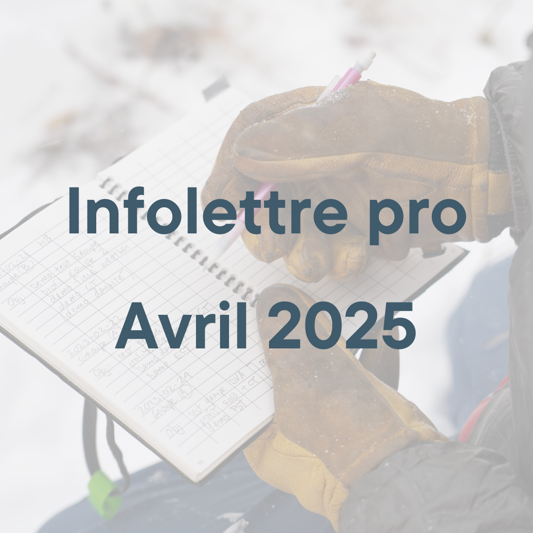 Quelques fois par année, nous publions une infolettre destinée aux membres de l’industrie, soit les gradué·es du cours Opérations d’avalanche Niveau 1, les propriétaires d’entreprises de guidage, les guides ou les chercheur·euses en sciences de la neige. Si vous en avez manqué une ou désirez les consulter, les voici.