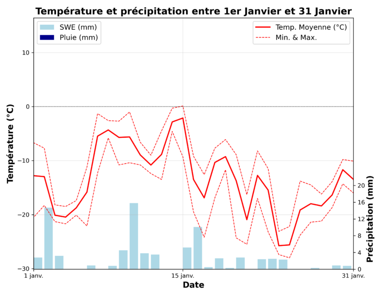 En quelques mots, janvier 2026 a été froid et très enneigé, marqué par des vents soutenus qui ont façonné le manteau neigeux et fortement influencé les conditions en montagne.